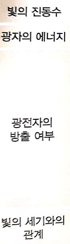 이에 덧붙여 아인슈타인은 빛은 광자의 집합으로써 광자 1개가 갖는 에너지가 'hf' 이기 때문에 빛 에너지의 크기는 hf의 정수배로만 정의된다고 주장합니다.