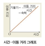 따라서 '시간-거리' 그래프의 기울기는 속력입니다. 속력은 시간 대비 거리의 물리량이기 때문에 단위는 m/s입니다.