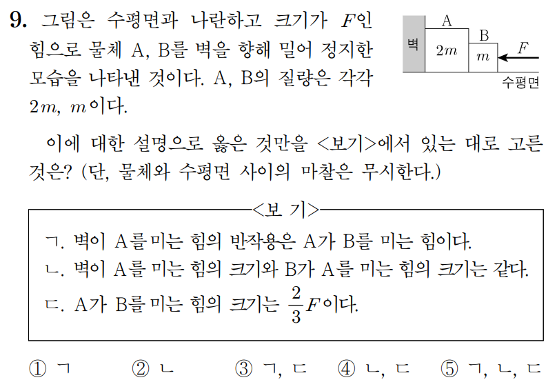 작용과 반작용의 관계에 있는 두 힘은 '주어와 목적어 위치가 바뀌어 있음'을 확인하세요.