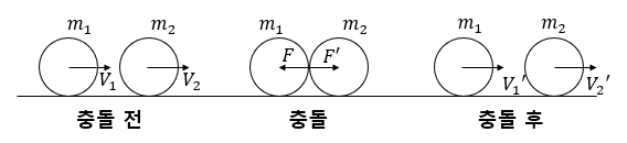 두 물체가 충돌하는 시간(△t) 동안 서로에게 작용하는 힘들은 '작용 반작용 관계'에 있기 때문에 크기가 같고, 방향은 서로 반대입니다.