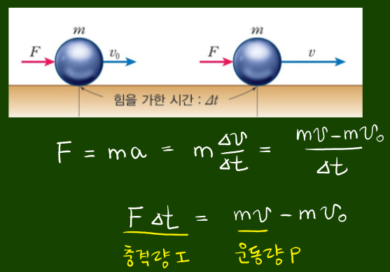 충격량은 △t동안 F가 물체에 작용할 때 물체가 받는 물리량으로써 크기와 방향을 모두 갖습니다.
