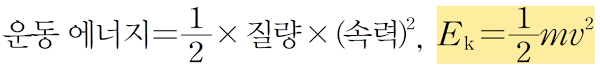 질량이 m이고, 속도 v로 운동하는 물체가 가지는 물리량으로써 기호는 Ek(kinetic energy), 단위는 J