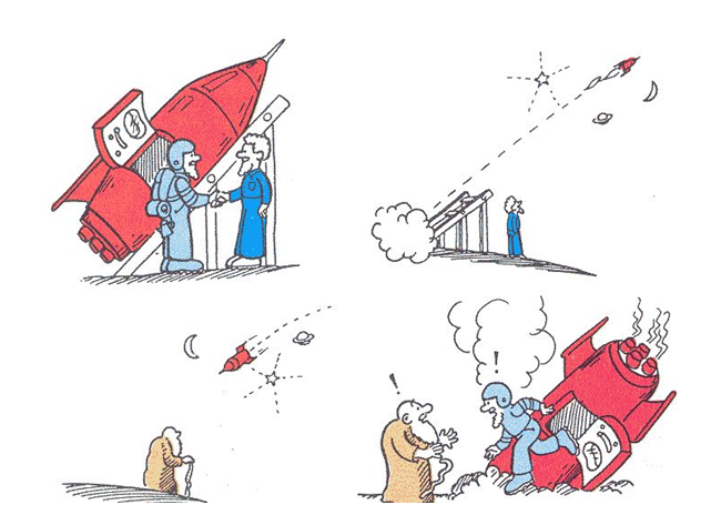 쌍둥이 중 한 명(A)은 지구에 남아있고, 한 명(B)은 머나먼 행성으로 우주선을 타고 떠납니다. 그런데 B가 행성에 도착하고 지구로 귀환하는 순간 모순이 생겨요. .