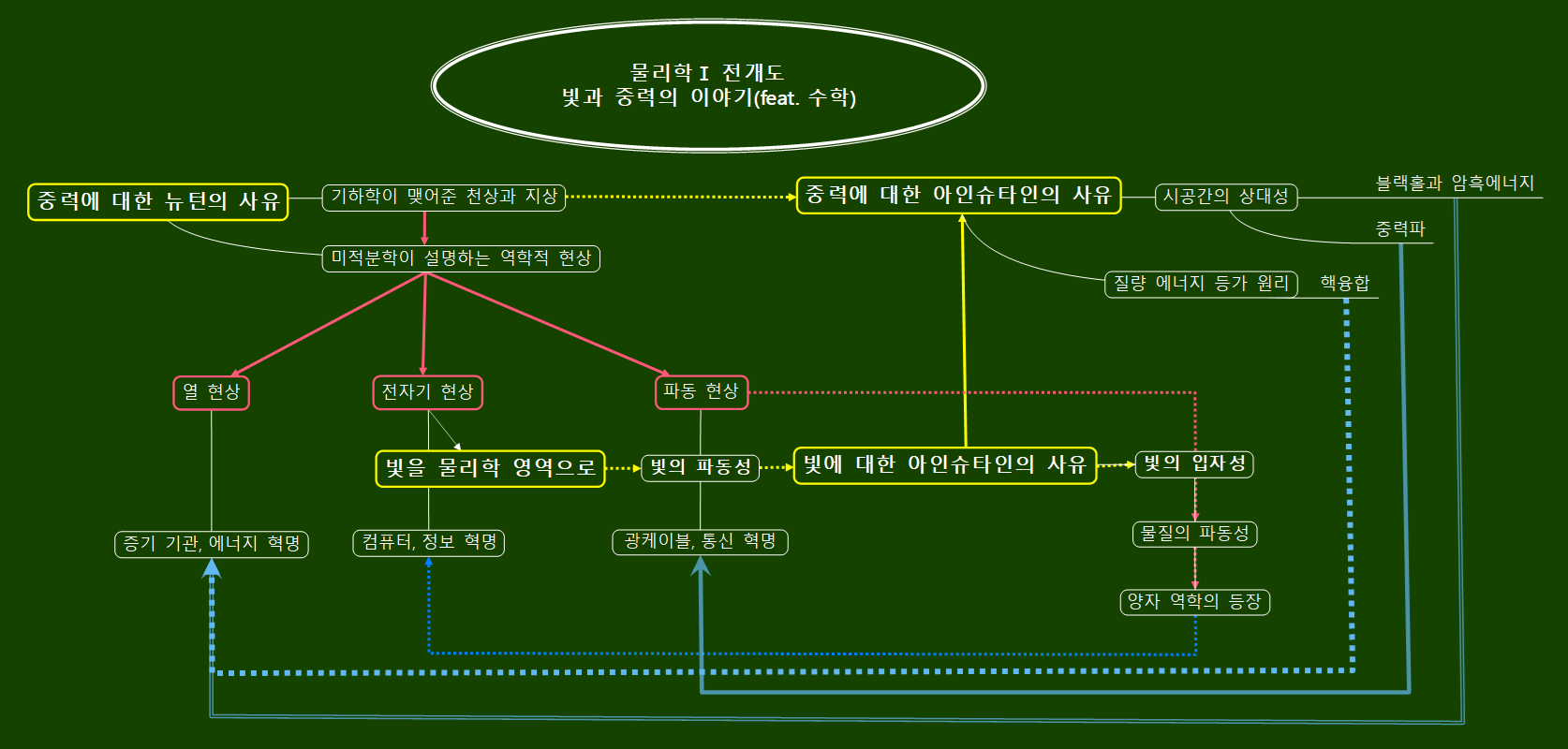 '2024 물리학I 톺아보기'는 뉴턴과 아인슈타인, 중력과 빛에 대한 그들의 사유를 토대로 물리학I 이 어떻게 전개되어 가는지 살펴보는 시간이었습니다. 중력이 이끌어내고 빛으로 밝혀진 물리학, 그 전개도의 최극단에 자리한 새로운 물리학인 상대성이론과 양자역학은 138억 년간의 우주의 오랜 침묵을 깼습니다.