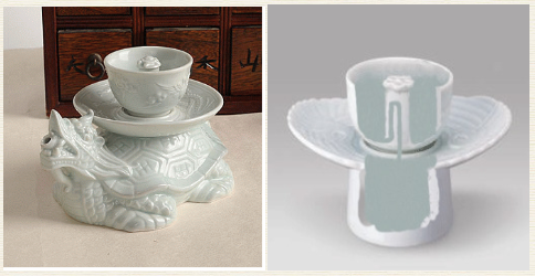 이처럼 계영배에 잔을 흘러 넘치게 따르면 사이펀의 원리가 작동하여 잔에 부은 액체의 대부분이 쏟아지는 결과가 나오는 것이다.