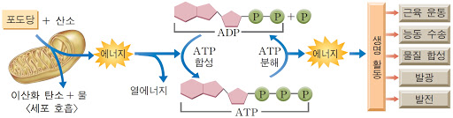 ATP는 골격근의 움직임뿐 아니라 심장이나 폐를 비롯한 여러 기관 등의 작동과 체온 유지 등에 쓰입니다. ATP가 갖는 화학 에너지가 골격근 수축이라는 기계적 에너지로, 혹은 체온이라는 열에너지로 전환되는 것이죠. 줄은 생체 내의 에너지 전환 과정을 실험으로 연출하는 과정에서 열과 일의 관계를 알아냅니다.