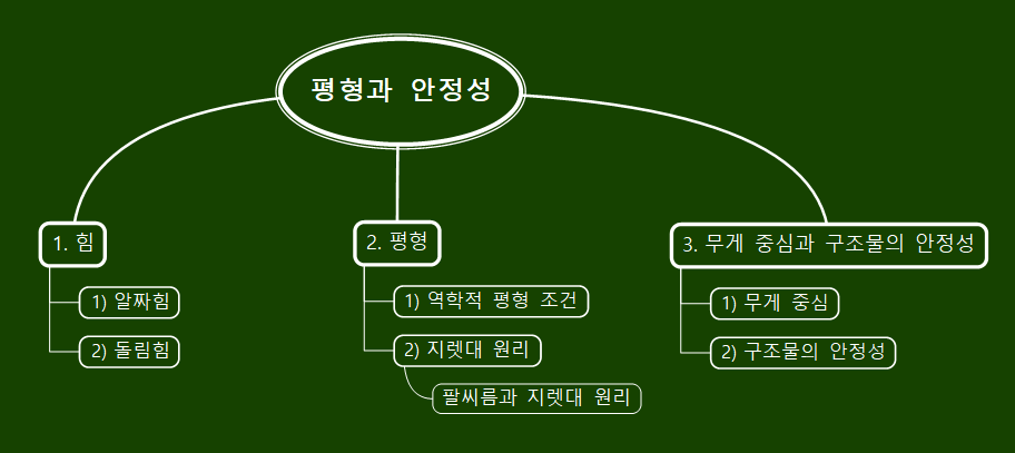 물체에 작용하는 알짜힘과 돌림힘이 0일 때 평형을 이룸을 알고, 다양한 구조물의 안정성을 분석할 수 있다.