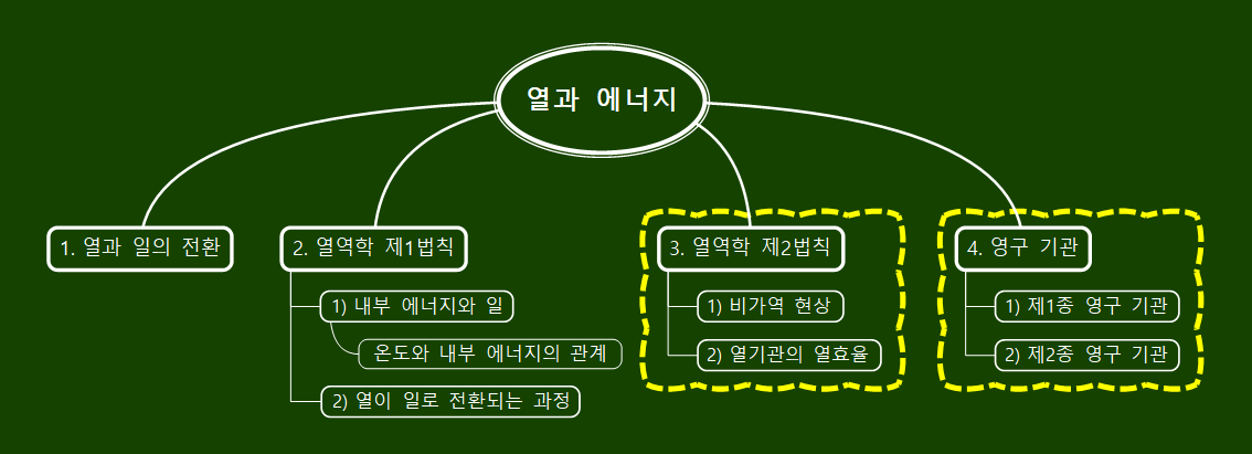 열이 역학적 에너지로 전환되는 과정의 효율을 정성적으로 이해하고, 영구 기관이 불가능함을 사례를 통해 논증할 수 있다.
