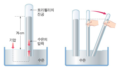 토리첼리는 수은을 이용하여 대기의 압력이 수은 기둥 76cm의 압력과 같다는 것을 밝혀낸다.