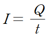 전류 I는 단위 시간에 도선의 단면을 통과하는 전하량으로, 시간 t초 동안 도선의 단면을 통과하는 전하량이 Q일 때 전류의 세기 I는 다음과 같이 정의됩니다. 단위는 A입니다.
