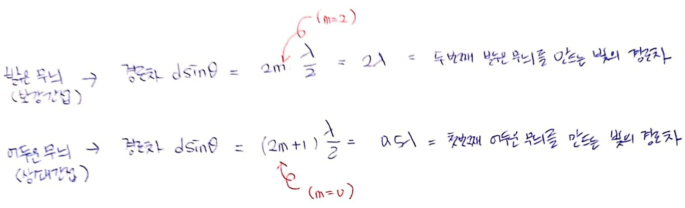 | m=2 (두 번째 밝은 무늬) | m=2 (세 번째 어두운 무늬) |