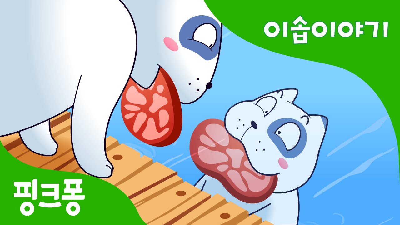 욕심 많은 개가 고기를 입에 물고 다리를 건널 때, 그 다리 밑에 다른 한 마리 개가 입에 고기를 물고 있었다. 욕심쟁이 개는 다리 밑의 고기가 더 크고 맛있어 보여 뺏어먹으려고 짖자, 입에 물고 있던 고기가 강물 속으로 떨어져 버렸다.